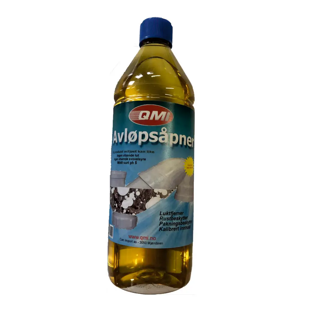 QMI Avløpsåpner løser problemet ved å ungå å bruke farlige kjemikaler for å åpne tette sluk. Den inneholder ikke skadelig stoffer som er farlig for mennesker. Grunnen til at veldig aggressive stoffer som lut og svovelsyre blir brukt, er at en ønsker en rask og effektiv åpning av sluk. Mange finner at miljøvennelige enzym baserte avløpsåpnere virker for sakte, når de trenger en rask åpning av sluk. De aggressive produktene kan skade både rør og pakninger, for ikke å nevne personer, som må utvise en meget høy forsiktighet for ikke å få stoffene i øyne eller hud. QMI Avløpsåpner fornyer pakninger, belegger rørene innvendig med en polymer som er en effektiv luktfjerner, samt den beskytter rørene. Se: http://forum.tilknyttet.no/viewtopic.php?t=4867