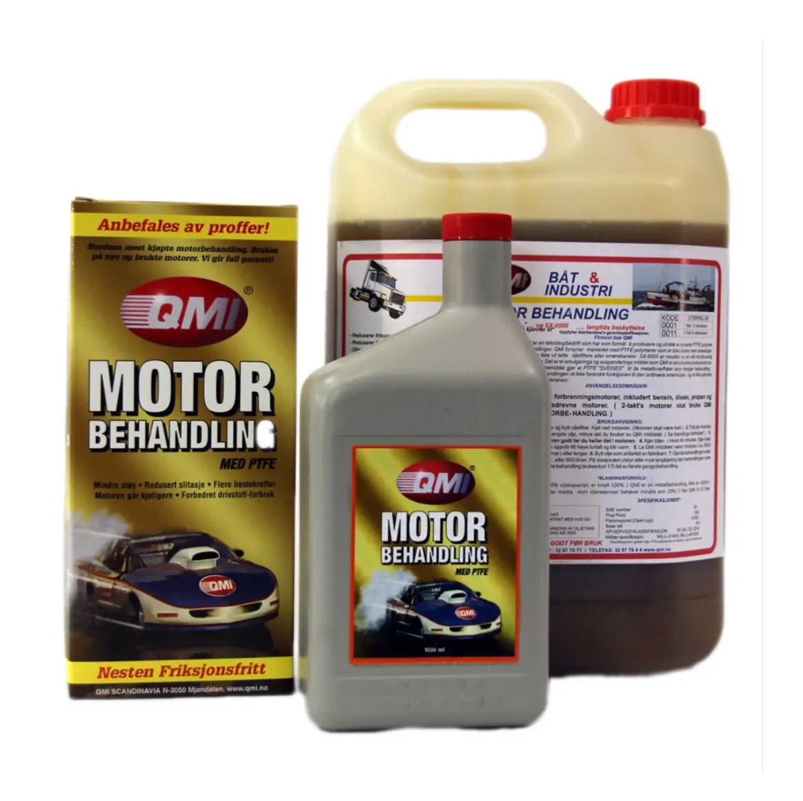 QMI motorbehandling er ikke en oljetilsetning men en metallbehandling. Den forandrer ikke oljens egenskaper. QMI motorbehandling legger et mikrotynt belegg av PTFE på metallet. Dette plastbelegget har en rekke fordeler. Friksjon og slitasje blir dramatisk redusert, samtidig som effekt, torque og brukstid øker. QMI motorbehandlingen har den ASTM godkjente test Sequence IIIE, som er anerkjent over hele verden, og er godkjent av motorfabrikantene. Denne testen viser en reduksjon av slitasje på hele 88% i forhold til referanseoljen.